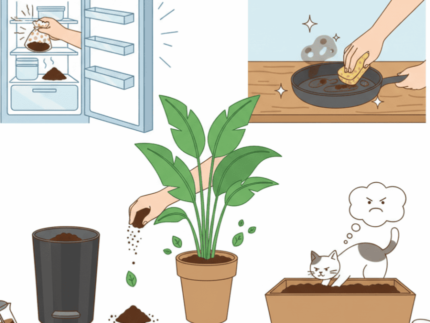 コーヒーかすの最大の魅力の一つは、その強力な消臭効果です。コーヒーかすには、ニオイの原因となる成分を吸着する性質があります。乾燥させて小皿に乗せるだけで、冷蔵庫や下駄箱、オフィスのロッカーなど、気になる場所に置いておくだけで、不快なニオイをグングン吸い取ってくれます。